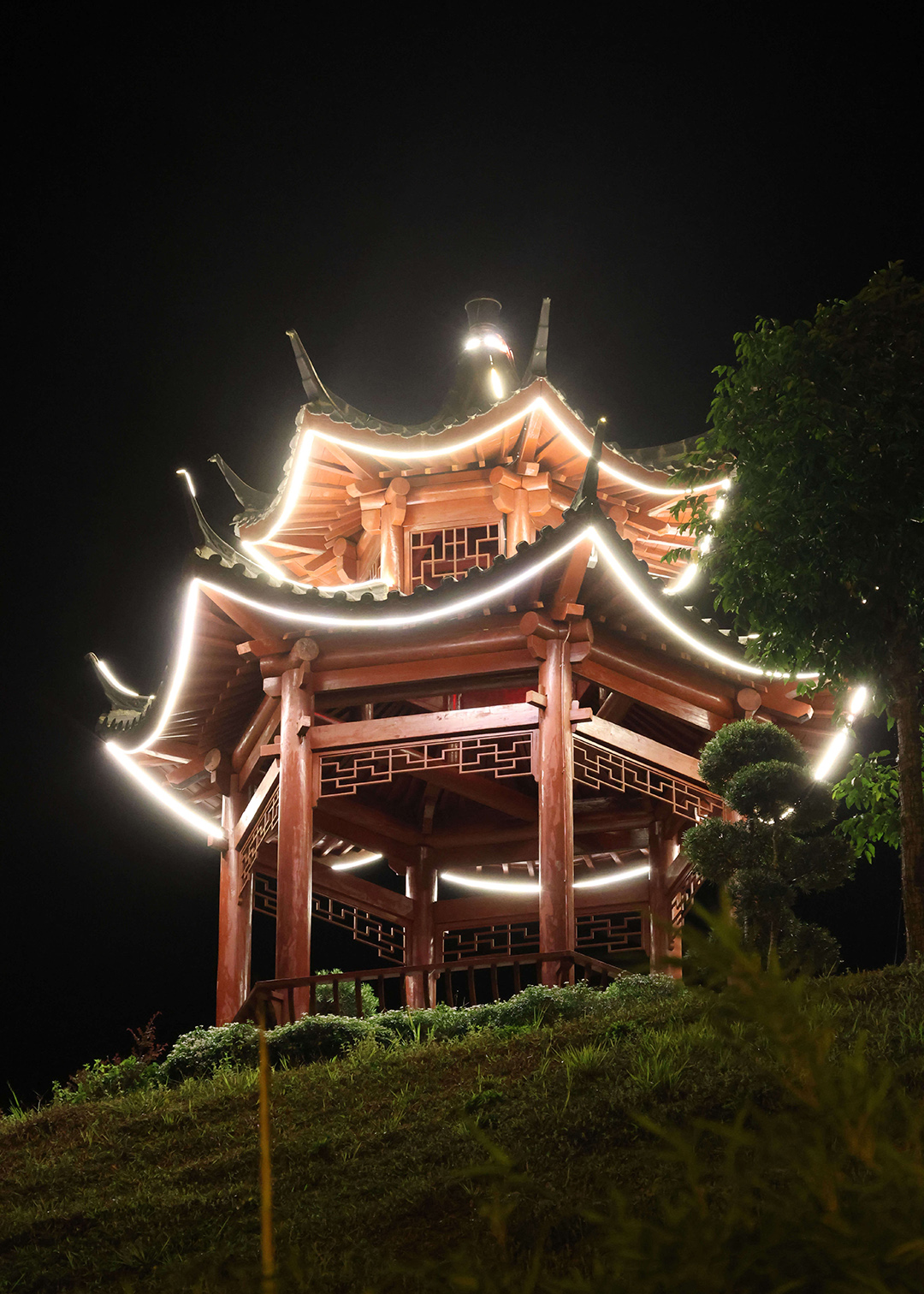 Setiap tahun, tokong ini dihiasi dengan limpahan lampu neon dan LED berwarna-warni, mencetuskan suasana meriah yang membangkitkan semangat komuniti Cina untuk menyambut perayaan tersebut. Lebih 2,000 tanglung digantung di perkarangan tokong, diserikan lagi dengan hiasan patung harimau dan pelbagai objek simbolik lain.